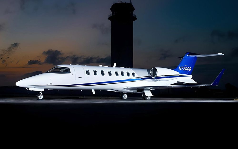 sheepskin inserts. The aft cabin includes a left side belted flushing toilet with stowable privacy doors. An external compartment provides fifty cubic feet of baggage space with an additional fifteen cubic feet of storage in the interior. The Learjet 45’s cabin holds eight seats (in a double club layout) with plenty of room to swivel, recline, and track. The cabin’s length and width are 19.8 feet and 5.1 feet, respectively. Don’t be misled by these measurements; the interior of the Learjet 45 was designed to offer the most usable passenger space possible so that the passengers do not feel claustrophobic.