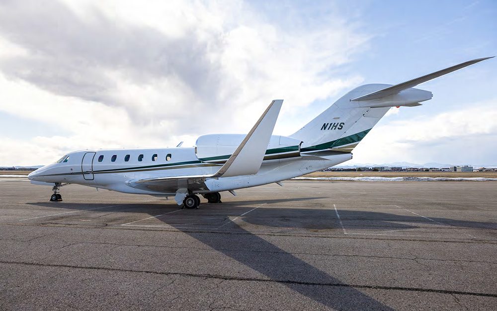 Repainted in 2011 by West Star Aviation – Grand Junction, CO. The Exterior is painted in overall Matterhorn White, with April Green and Spanish Gold stripes
