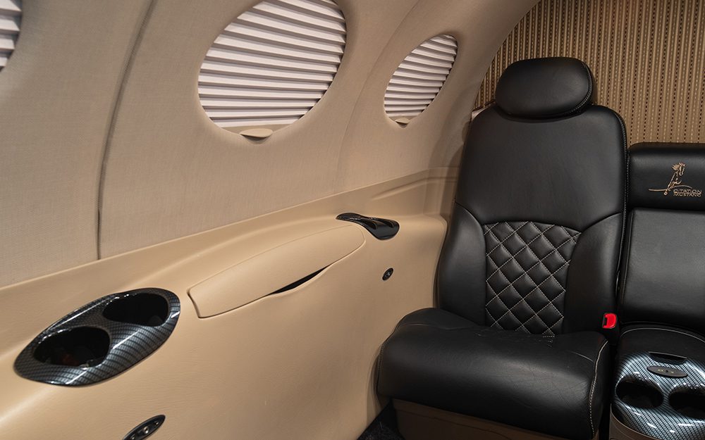 Black Leather Seats with Diamond Stitches Accented with High Gloss Black Cabinets and Carbon Fiber Accents.