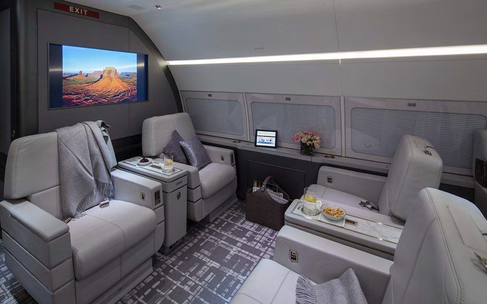 Lavatory Locations: Forward, Mid and Aft Lounge & Dining Area: Seven (7) Club Seats and a 3-Place Rounded Couch, Followed by