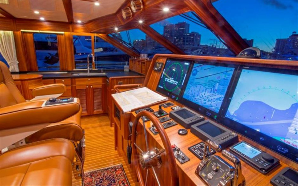 Controls: Steering, Engine Start/stop, Gearshift, Throttles, Horn, Bow Thruster, Wipers, Bilge Pumps, Exterior Lighting, Running Lights