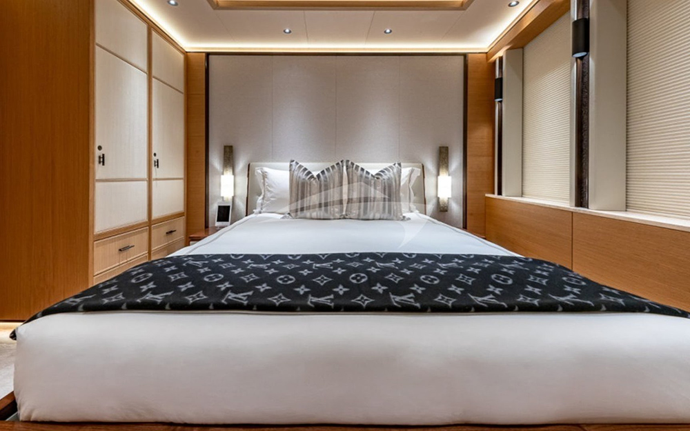 The Royal Hakvoort living spaces were designed with entertaining in mind. Formal dining areas are featured throughout the yacht. The galley is an open, socially-oriented space, that is also properly adapted for the onboard chef. A glass elevator reaches all decks onboard, transporting guests to any of the 5 decks. The dedicated owner’s deck features a private dining area and a foredeck jacuzzi for privacy and relaxation. The large king bed is surrounded by 180-degree floor-to-ceiling windows allowing sunlight to illuminate the suite. Additional guest rooms offer convertible spaces to fit any combination of families, friends, or corporate charters. Each stateroom features large windows, providing a stunning view from every angle. One stateroom is wheelchair accessible.